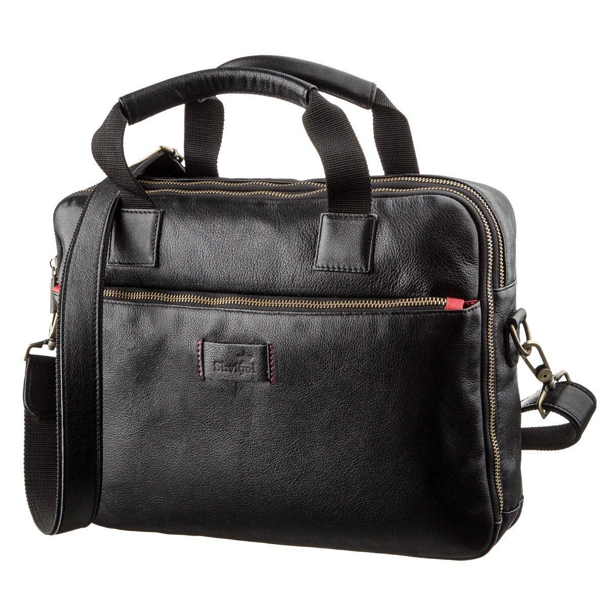 Чоловіча шкіряна сумка під ноутбук на 2 відділення SHVIGEL 19106 Чорна