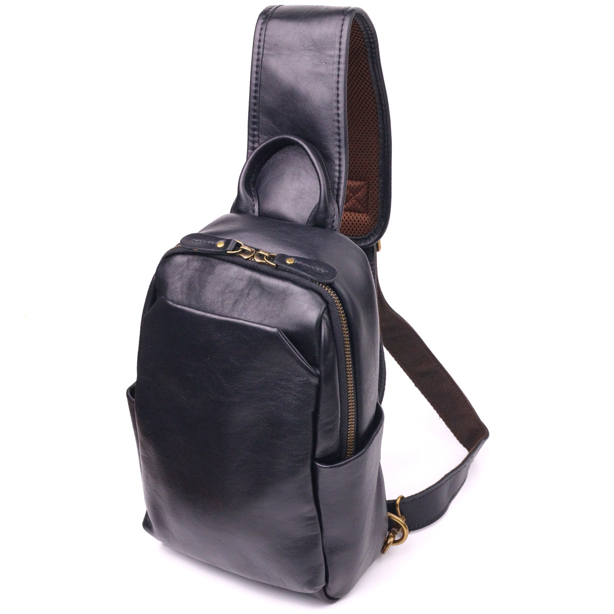 Надзвичайна сумка чоловіча через плече із натуральної гладкої шкіри 21286 Vintage Чорна